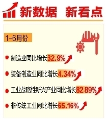 稳步发展中,新兴力量贡献提升。中德智达新能源汽车轻量化铝型材组件项目部分投产,项目建成后将进一步优化企业产业结构,填补我省在铝镁合金高端领域的空白;潞安太阳能投资1.5亿元实施的高效单晶太阳能电池大尺寸升级改造和长治高测光伏金刚线升级改造项目部分投产,建成后将有力提升山西省光电产业在全国的影响力,并带动下游终端应用产业的健康发展……作为产业转型升级重要动能,我市工业战略性新兴产业快速发展,1-6月份工业战略性新兴产业同比增长82.89%,上拉工业增速8.09个百分点。其中节能环保产业是主体产业,1-6月份同比增长177.2%,增加值占战略性新兴产业增加值比重为78.02%。与此同时,新入库企业高速增长,1-6月份我市新入库企业占规上企业户数比重为24.1%,增加值同比增长205.94%。民营工业平稳增长,1-6月份我市共有民营企业466户,占规上企业户数比重为73.97%,增加值同比增长18.75%,推动工业经济转型动能不断集聚,发展质效明显提升。