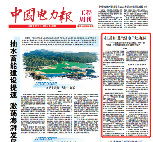 中国电力报:打通川苏“绿电”大动脉——中国能建华北院参与设计的±800千伏白鹤滩—江苏特高压直流输电线路工程投产
