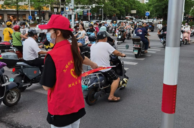 在鲤城区兴贤路与笋江路交叉路口,来自泉州市鲤城区地产开发有限公司的职工们也穿上了“红马甲”,协助路边交警指挥、引导交通。“我们重点对逆向行驶、不按道行驶、未戴安全头盔等违法行为进行制止、劝导。”该公司职工魏晓婷表示,通过参加志愿服务,尽自己的微薄之力减轻交警工作负担,非常有意义。