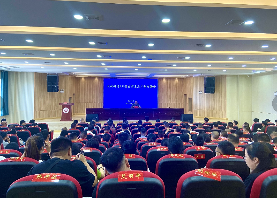 8月3日上午,天岳街道召开8月份当前重点工作推进会,会议对创建全国文明城市迎省检、政法、信访维稳、疫情防控等当前重点工作进行部署安排,确保各项工作统筹推进,抓出成效,高质高效完成目标任务。街道党工委书记周李主持会议并讲话,全体机关干部职工,各部门负责人,各村(社区)支部书记、创文专干、政法专干、防疫专干和辅警参加。