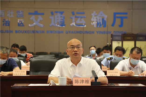 南宁讯(刘如萍?通讯员?黄海 摄影报道)8月9日,交通运输部在北京召开疫情防控工作视频调度会,调度各地交通运输疫情防控和服务保障工作情况,部署相关工作。广西壮族自治区交通运输厅总工程师陈津维在广西分会场参加视频会议并作工作汇报。