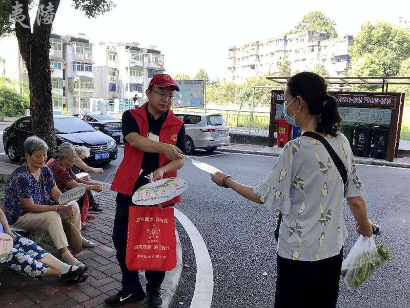 8月6日,烈日下,46家区直单位近500名志愿者头戴小红帽、身穿红马甲穿梭在夷陵区的大街小巷,他们维护交通秩序、清理杂物垃圾、规范车辆摆放、宣讲《宜昌市文明行为促进条例》……
