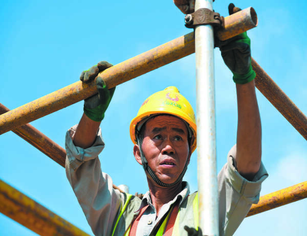 8月5日,在桂林至柳州高速公路改扩建项目僚田互通施工现场,随处可见架子工、模板工等作业人员开展中墩施工工作。烈日下,他们承受着太阳、地面、施工作业面及周围物体释放的热量,裸露在外的皮肤被晒得通红,但他们依然坚守岗位,辛勤工作,用汗水“筑”就公路之美。(蒋文韬/图文)