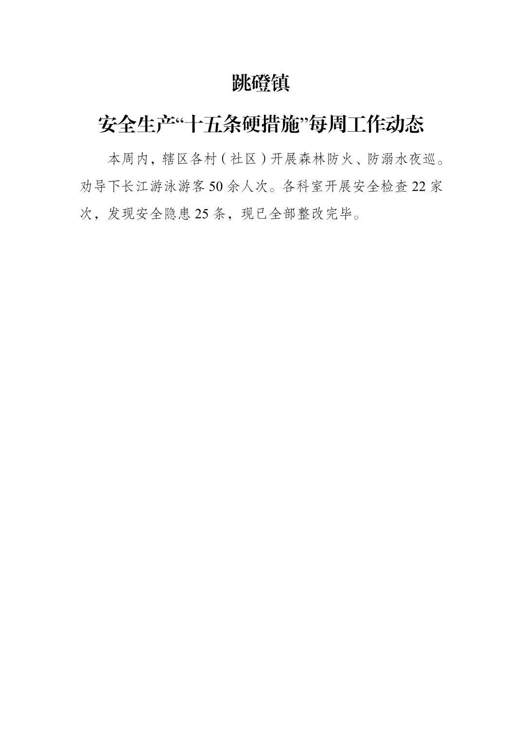 跳磴镇安全生产“十五条硬措施”每周工作动态