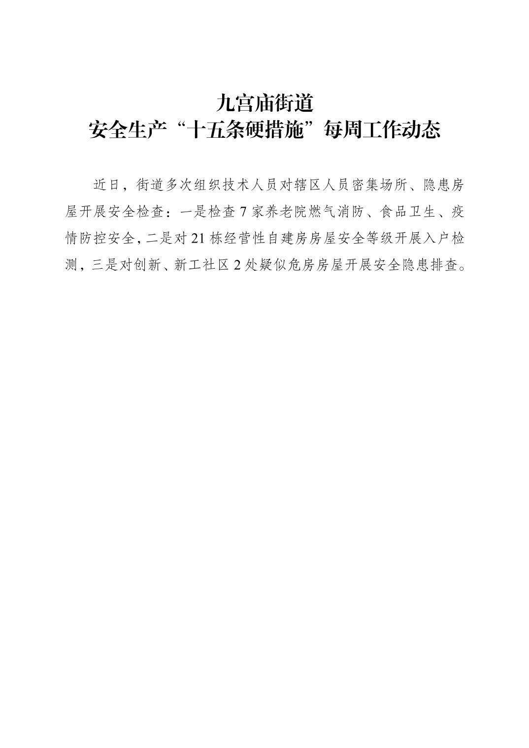 九宫庙街道安全生产“十五条硬措施”每周工作动态