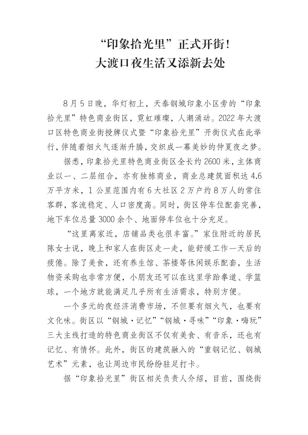 “印象拾光里”正式开街!大渡口夜生活又添新去处