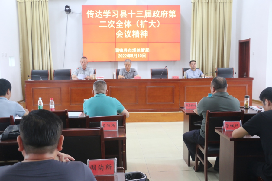8月10日下午,固镇县市场监管局召开专题会议传达学习县十三届政府第二次全体(扩大)会议精神。县局党委委员、各直属派出机构及局机关各股室负责人参加了会议。