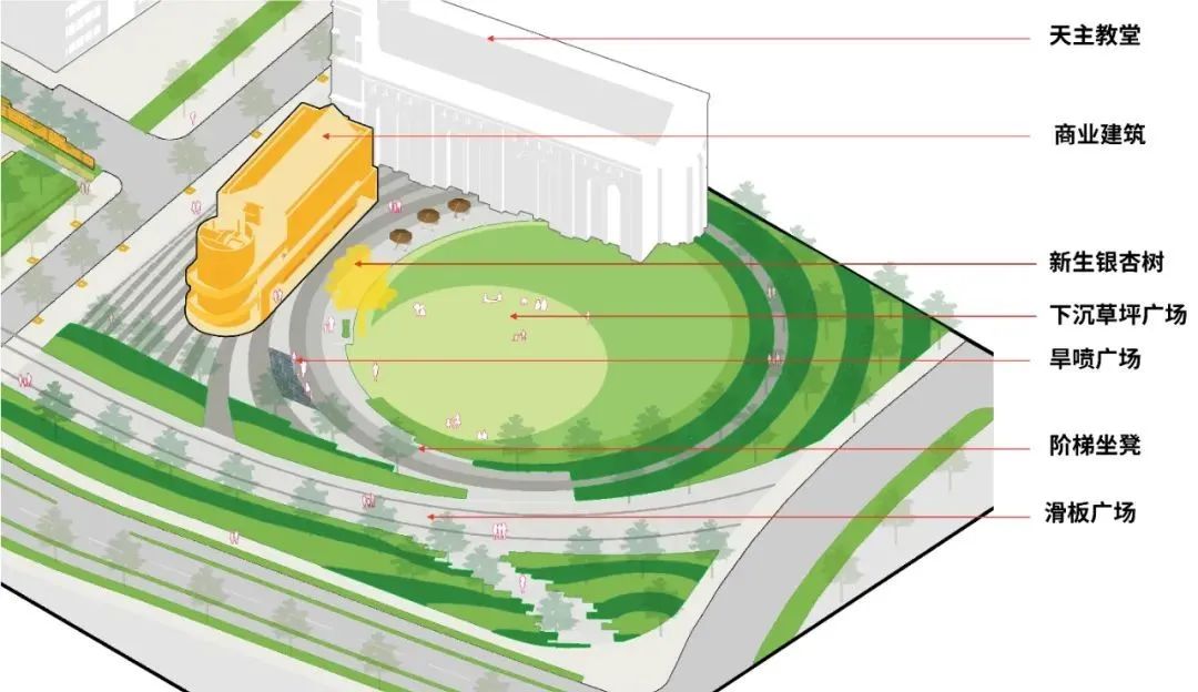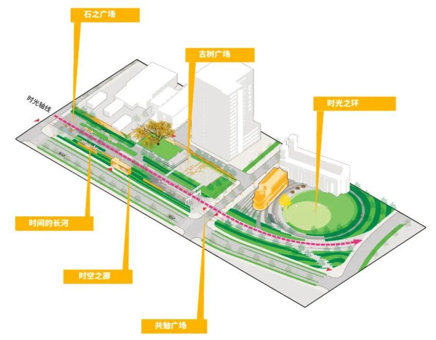 根据其方案,一条紧邻汉阳树、贯穿南北园的“时空之廊”,与廊道尽头圆形下沉草坪广场形成的“时光之环”构成了公园的主要空间构造,串联起南园、北园六大景观节点,确保打造出360度的城市开敞界面,把“藏”在市井里的“汉阳树”和周边文化古迹充分展现给市民。