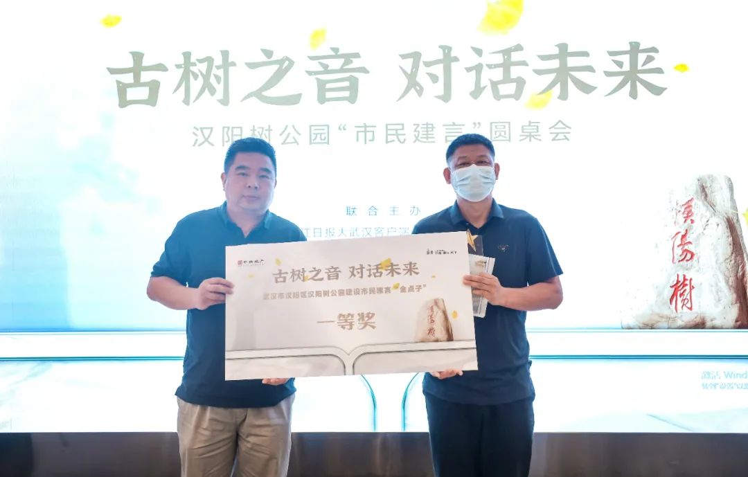 活动现场,为期3个月的“汉阳树公园怎么建,万元大奖邀你来说”征集评选活动公布获奖名单,从上千条真诚建言中评出“金点子”大奖1名、“金点子”优秀奖10名,并颁发证书。