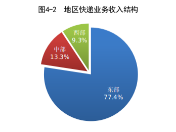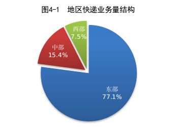 1-7月,东、中、西部地区快递业务量比重分别为77.1%、15.4%和7.5%,业务收入比重分别为77.4%、13.3%和9.3%。与去年同期相比,东部地区快递业务量比重下降1.5个百分点,快递业务收入比重下降1.1个百分点;中部地区快递业务量比重上升1.2个百分点,快递业务收入比重上升0.6个百分点;西部地区快递业务量比重上升0.3个百分点,快递业务收入比重上升0.5个百分点。
