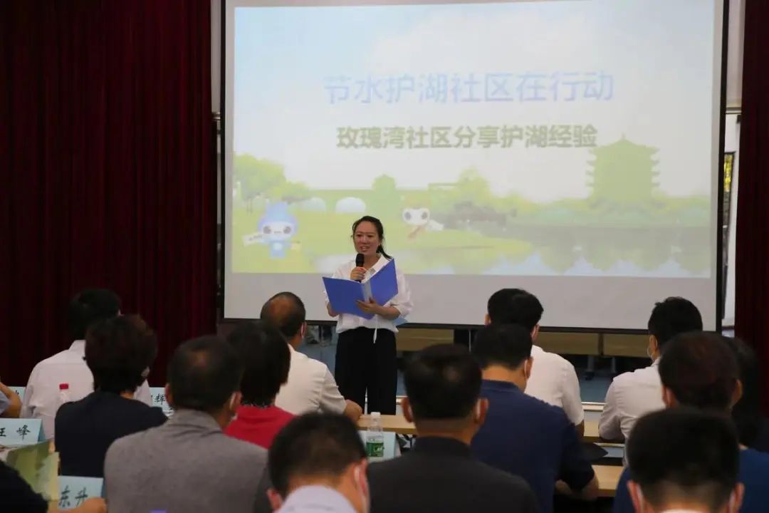 “以功成不必在我的胸怀,坚持功成必定有我的担当,积极投身到节水护湖的实际行动中。”节水护湖,人人都是参与者、主人翁。活动最后,环南湖所有社区、学校、机关共同宣读《节水护湖我们在行动》倡议书,向全社会发出节水倡议。
