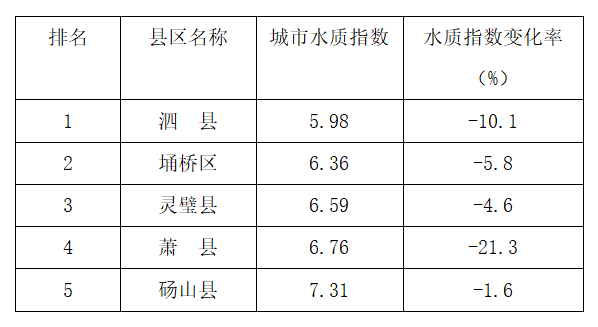 宿州市生态环境局-我市公布2022年1至7月县(区)地表水质排名