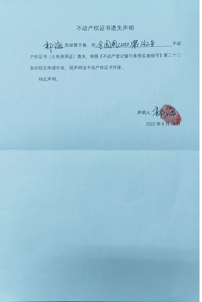 不动产登记遗失公示