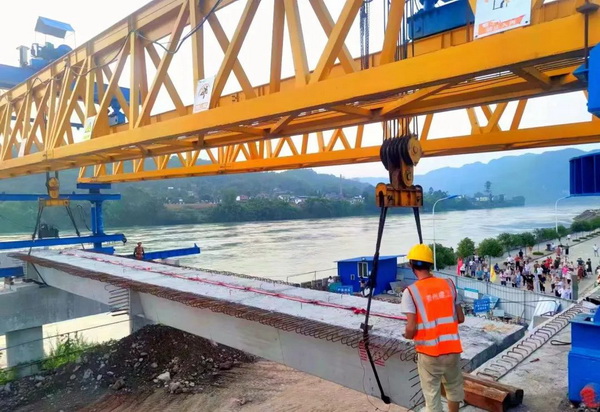 总投资4500万元的福禄大桥是沙湾区“四路两桥”项目中的“两桥”之一,也是连接福禄镇和G348线的主要通道。大桥全长528米,主桥桥面宽度15米,按照四级公路标准建设。今天上午,记者在福禄大桥桥梁预制场看到,30多名施工人员正顶着高温,争分夺秒加快制作预制箱梁,为月底桥梁顺利铺装提供保障。