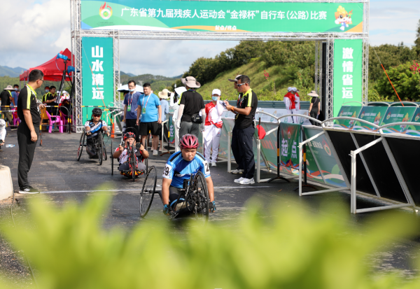 8月5日,广东省第九届残疾人运动会首个残奥项目自行车(公路)比赛在佛冈正式开赛。