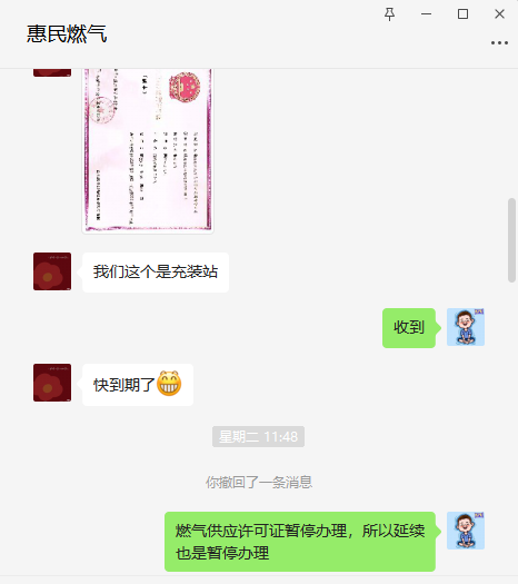 淄博惠民燃气有限公司高青分公司燃气(供应站)经营许可证将于9月1日到期,8月2日,李晓梦经理向高青县行政审批服务局投资项目科咨询申请燃气供应许可延续的相关材料。工作人员对李经理详细地介绍了最新修正的《山东省燃气管理条例》,依据相关规定,现已暂停办理燃气供应许可证。