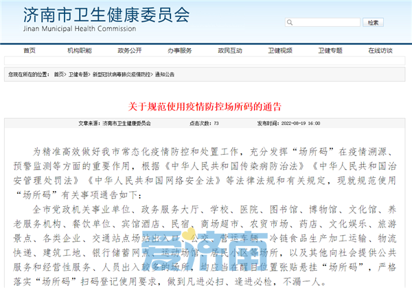 凡进必扫、逢进必检、不漏一人!济南最新通告:依法落实“场所码”管理和使用责任