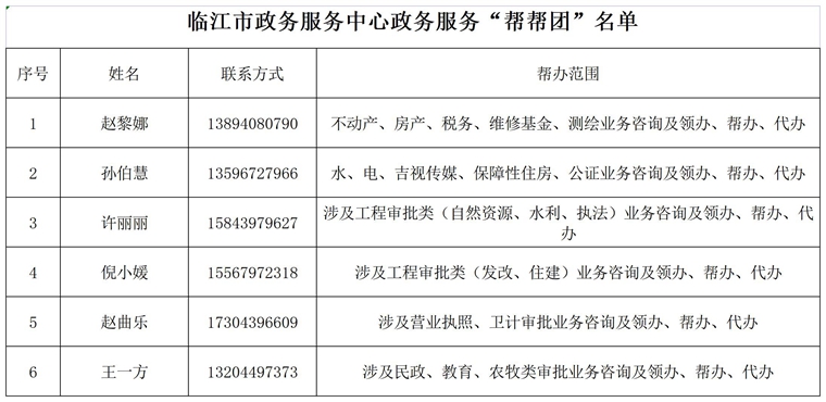 关于公布临江市政务服务中心政务服务“帮帮团”名单