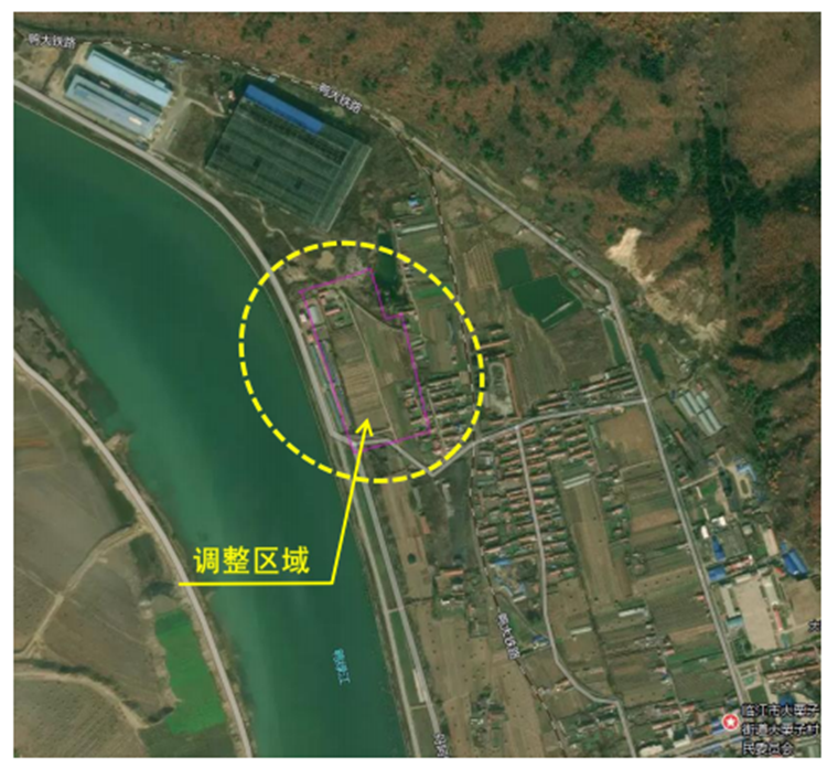 本次拟调整地块位于大栗子片区西部工业集中区,临江大栗子街道。拟调整用地东至规划二路,西至丹阿线(G331);南起规划鸭江街,北至大华铸件厂。