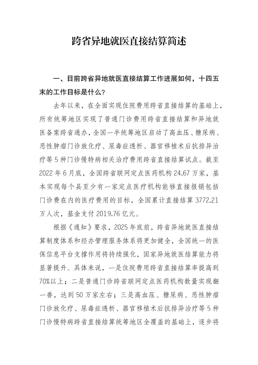 跨省异地就医直接结算简述