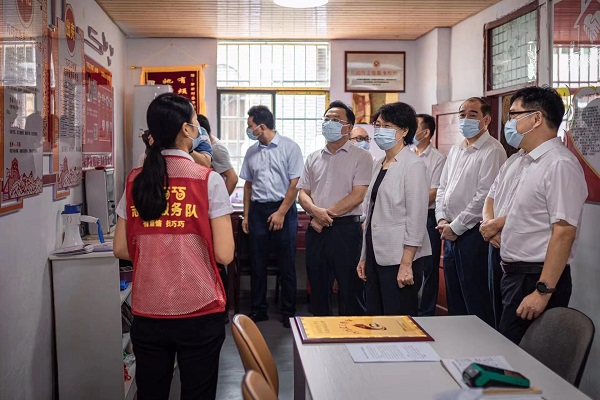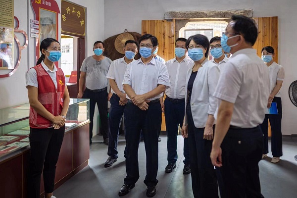 (本网讯)8月24日上午,省委常委、政法委书记肖菊华到东沟镇茅圻村调研“巧巧工作室”,“三治”融合、矛盾纠纷化解等情况。市委书记孙兵,市委副书记、政法委书记徐艳国,区委书记、区人大常委会主任蔡和林,区委副书记、区长窦小华,区委副书记、区委政法委书记余绍树,东沟镇党委书记刘志刚陪同调研。