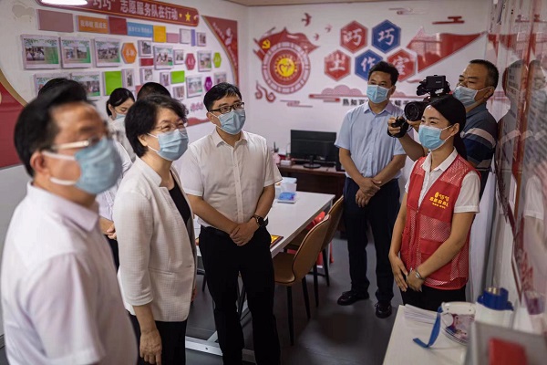 肖菊华来到茅圻村“巧巧工作室”,听取工作室负责人余巧关于工作室巧“代”、巧“修”、巧“言”、巧“调”的“四巧”服务内容以及“群众点单、工作室派单、党员志愿者接单、群众评单”的“四单”服务模式等方面的介绍。