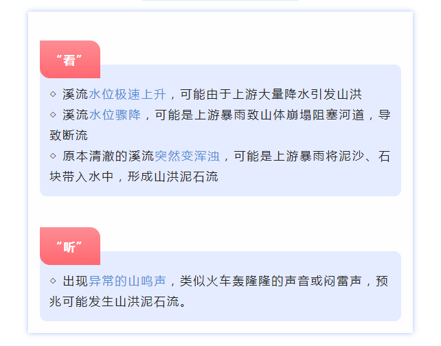 山洪预警一旦有,不要犹豫马上走。山洪灾害发生的季节性和区域性明显,具有频率高、易发生、成灾快、危害大等特点。