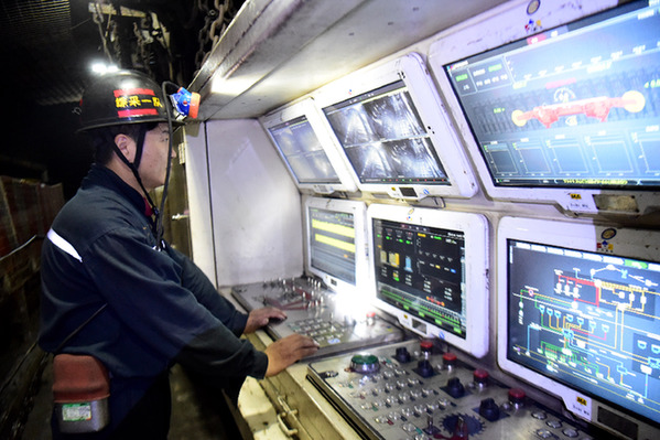 8月25日,中煤新集能源股份有限公司刘庄煤矿工人监测煤炭开采情况。近来,全国多地遭遇高温天气,用电负荷增加,电煤需求攀升。新华社记者 黄博涵 摄