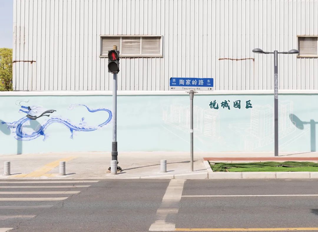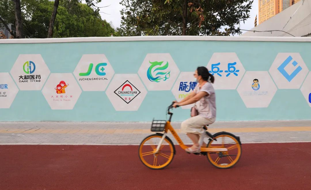 彩绘墙选取中国风水墨色彩,融合龙阳街道街景,展示大健康和新能源车产业布局和企业logo,彰显当代龙阳产业腾飞的新面貌。"我们希望让每一个生活在这里的居民能够感受自己街道的文化魅力。"
