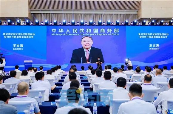 王文涛对大会的召开及黄河流域自贸试验区联盟的成立表示祝贺。他说,在习近平总书记亲自谋划、亲自部署、亲自推动下,在党中央的坚强领导下,各有关部门和地方加强协调配合,积极主动作为,推动黄河流域不断加快改革开放步伐,持续提升对内对外开放水平,取得了显著成效。本次大会以自贸试验区赋能黄河流域高质量发展为主题,启动黄河流域自贸试验区联盟,将建设自贸试验区与推动黄河流域生态保护和高质量发展相结合,是深入贯彻党中央决策部署、服务重大国家战略的创新举措,也是更好发挥自贸试验区辐射带动作用的生动实践。商务部将同黄河流域9省(区)和有关部门一道,充分发挥黄河流域自贸试验区联盟的作用,扎实推进跨区域合作和协同创新,在服务和融入新发展格局中展现更大作为,在推动黄河流域生态保护和高质量发展方面发挥更大作用,共同唱响新时代黄河大合唱的最强音。