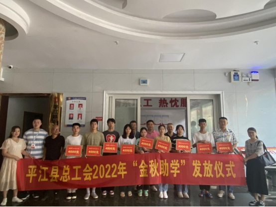 金秋助学,任重道远。为实现“不让一名大学生因家庭经济困难而失学”的目标,2022年县总工会“金秋助学”活动资助困难职工(农民工)子女本科新生200名,每人发放助学金4000元,共计80万元,切实解决了困难职工(农民工)子女上学难问题。(钟珍珍)