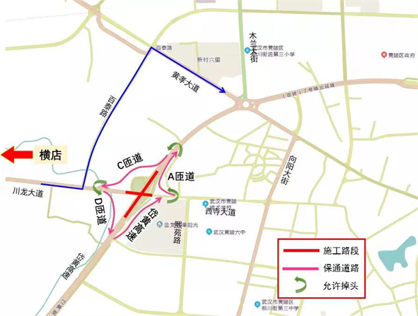 改造施工期间,往来黄陂与汉口车辆需通过两侧保通道路通行,可能出现拥堵情况,建议市民通过周边道路绕行。