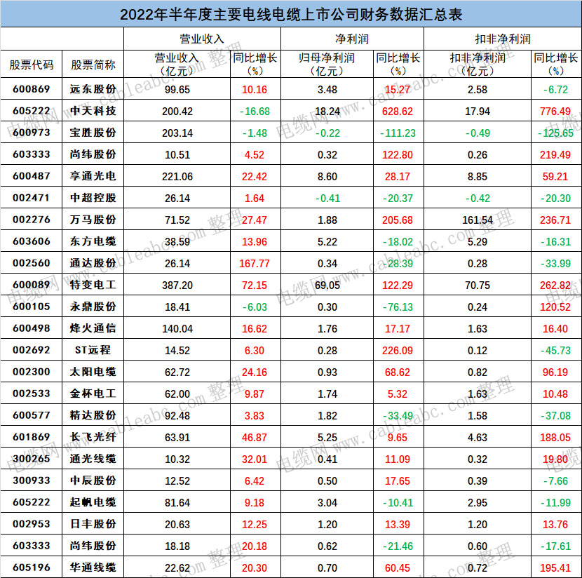 电缆网盘点半年报:23家线缆上市公司仅2家亏损