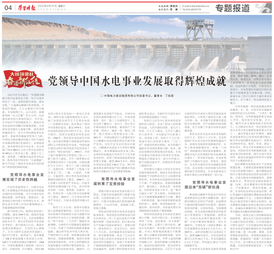 《学习时报》刊发丁焰章署名文章:党领导中国水电事业发展取得辉煌成就
