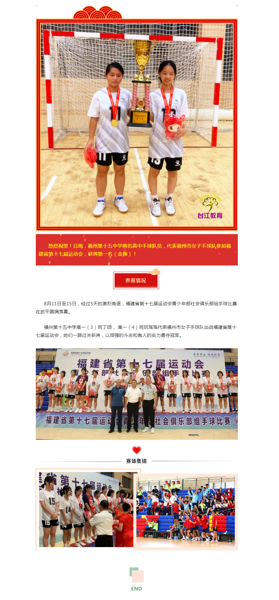 祝贺!台江学子代表福州市女子手球队参赛,在福建省第十七届运动会夺冠!