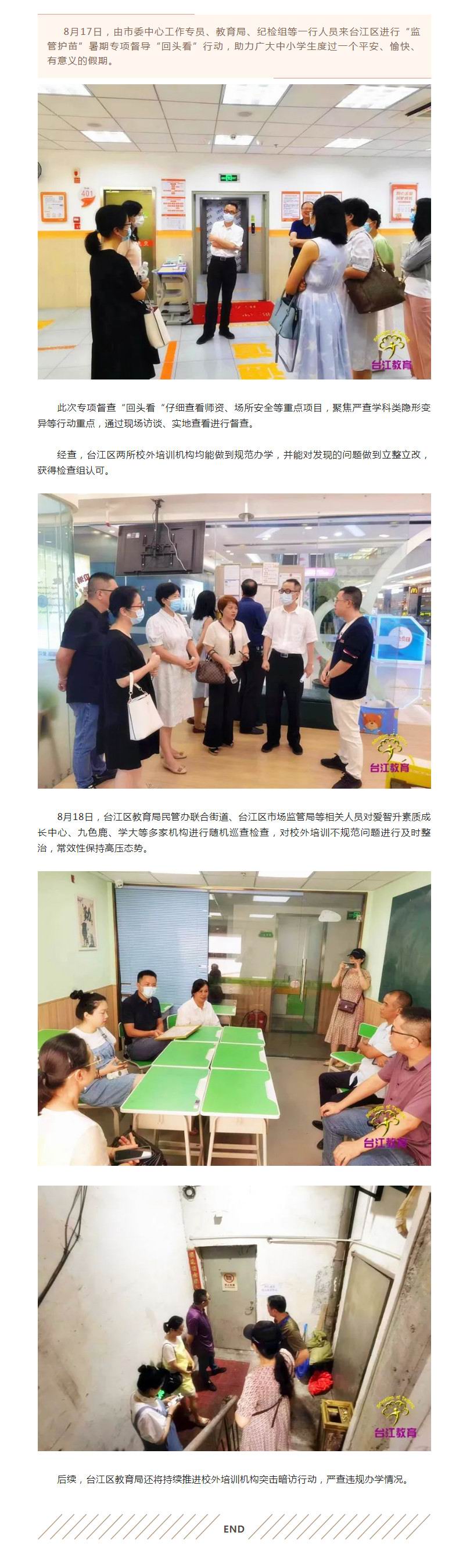 台江区教育局开展校外培训“监管护苗”暑期专项行动“回头看”