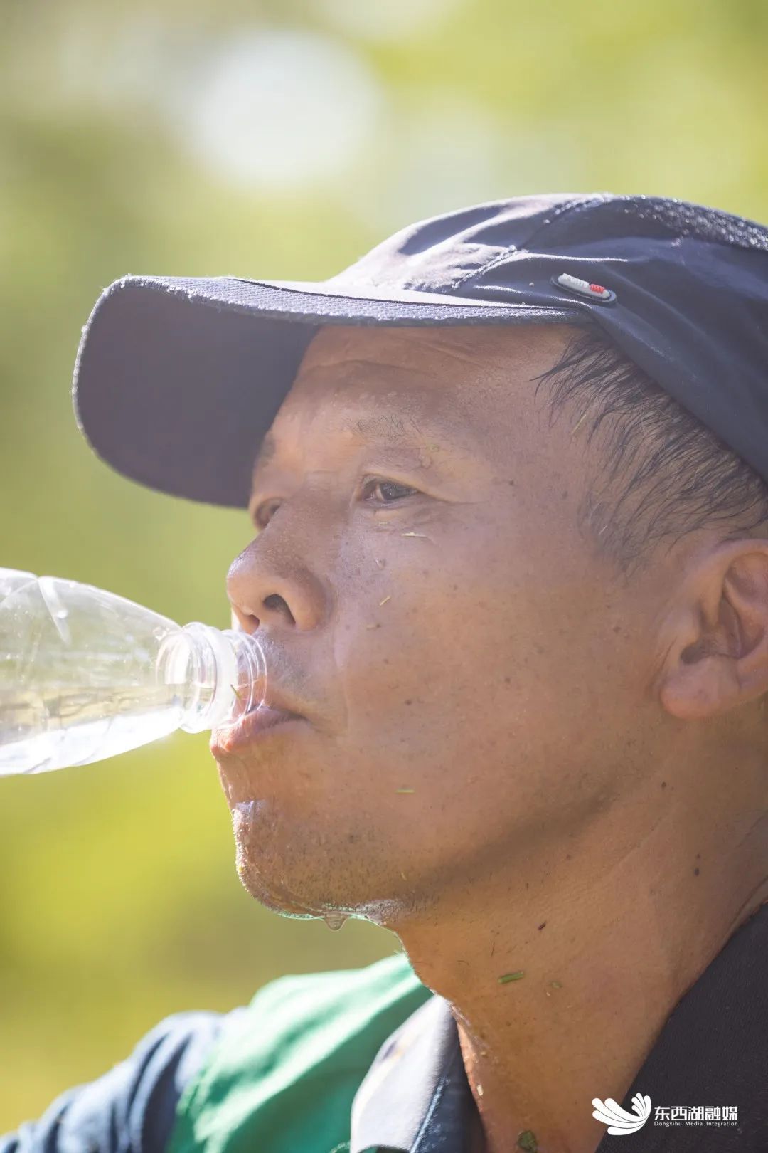 “一个上午至少要喝3大瓶水。”趁上堤给机器加油,56岁的除草队队长任胜权“咕噜咕噜”猛喝几大口水。“除草机一背上身就是4个小时,直到收工才会熄火。”
