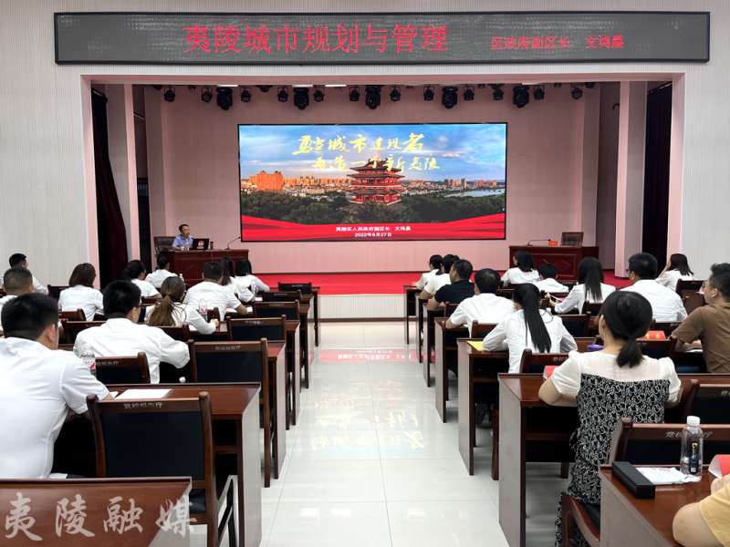 本网讯(通讯员 向潇)城市建设是打造城市空间价值的重要手段,是推动区域经济社会发展的重要动力,更是重大的民生工程,关系到人民群众的生活福祉。为让青年干部进一步了解城市建设、参与城市建设、热爱城市建设,8月27日,夷陵区政府副区长文鸿晨以《勇当城市建设者 再造一个新夷陵》为题为第二期青干班104名学员进行专题授课。