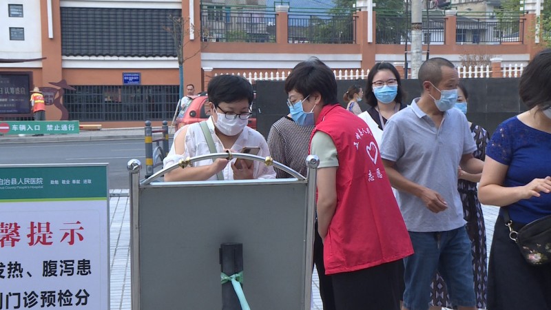 8月26日,副县长王进到县人民医院,开展下基层察民情解民忧暖民心实践活动。在门诊大厅、体检中心等地,王进穿上红马甲以志愿者身份,引导广大居民自觉扫码、戴口罩、保持一米安全距离,并与工作人员深入交流,详细了解当前疫情防控、人员配备等情况。