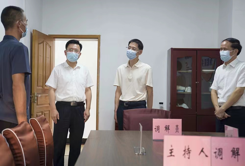 赵利洪先后来到信访接待大厅、平安建设指挥研判室、应急指挥中心、调解室、速裁庭等功能室查看设施配备和实体化运行情况,详细了解“三中心合一”闭环流程、联动联调机制、现场处置机制、跟踪办结机制以及工作成效、社会关注等情况,充分肯定了实体化运行取得的成绩。