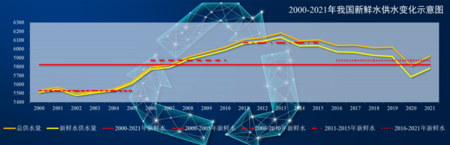 图8 2000-2021年我国新鲜水供水变化示意图