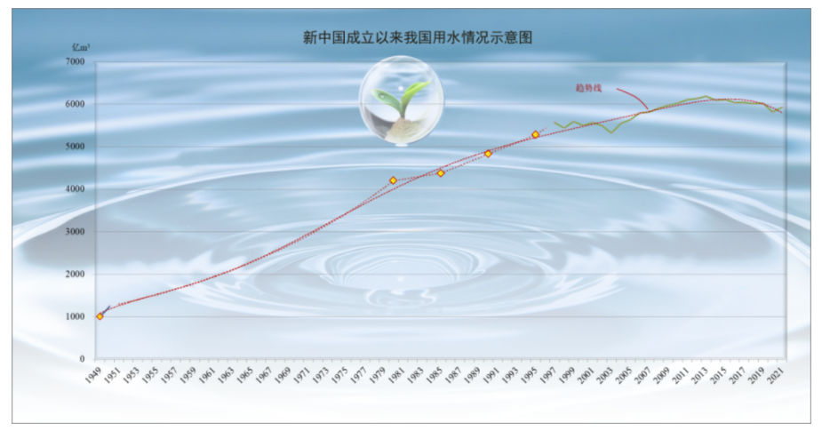 图1 新中国成立以来我国用水态势变化示意图(单位:亿m3)