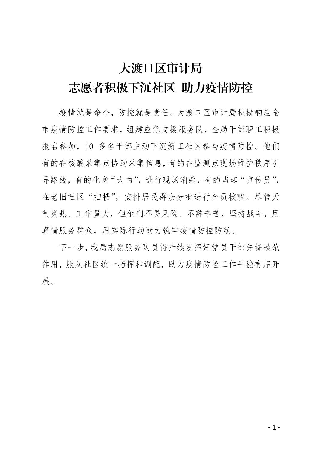 大渡口区审计局志愿者积极下沉社区 助力疫情防控