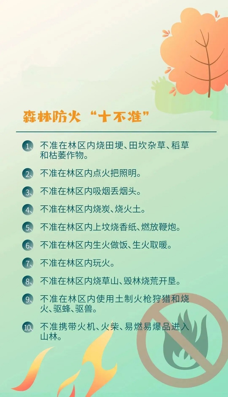据黄陂区应急管理局、区园林和林业局消息,目前黄陂区已进入秋季森林防火期,并已发布森林防火戒严令,提醒市民和游客进入森林,不携带易燃物品,不乱丢烟蒂,不擅自在山中、林中用火。