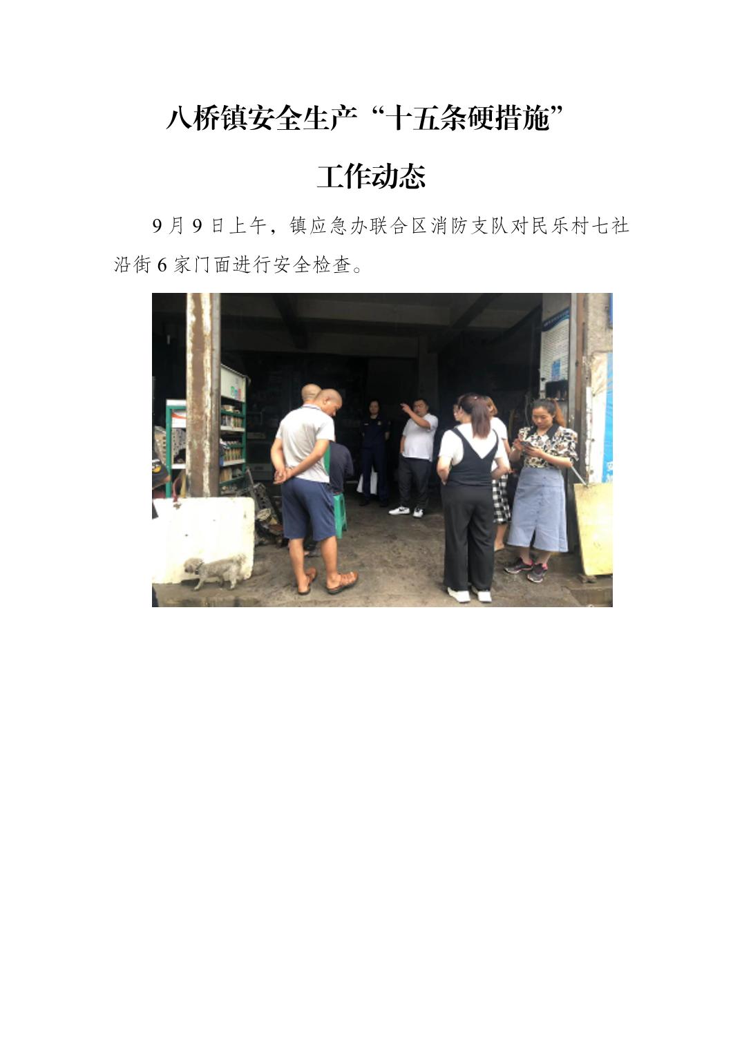 八桥镇安全生产“十五条硬措施” 工作动态(9月9日)