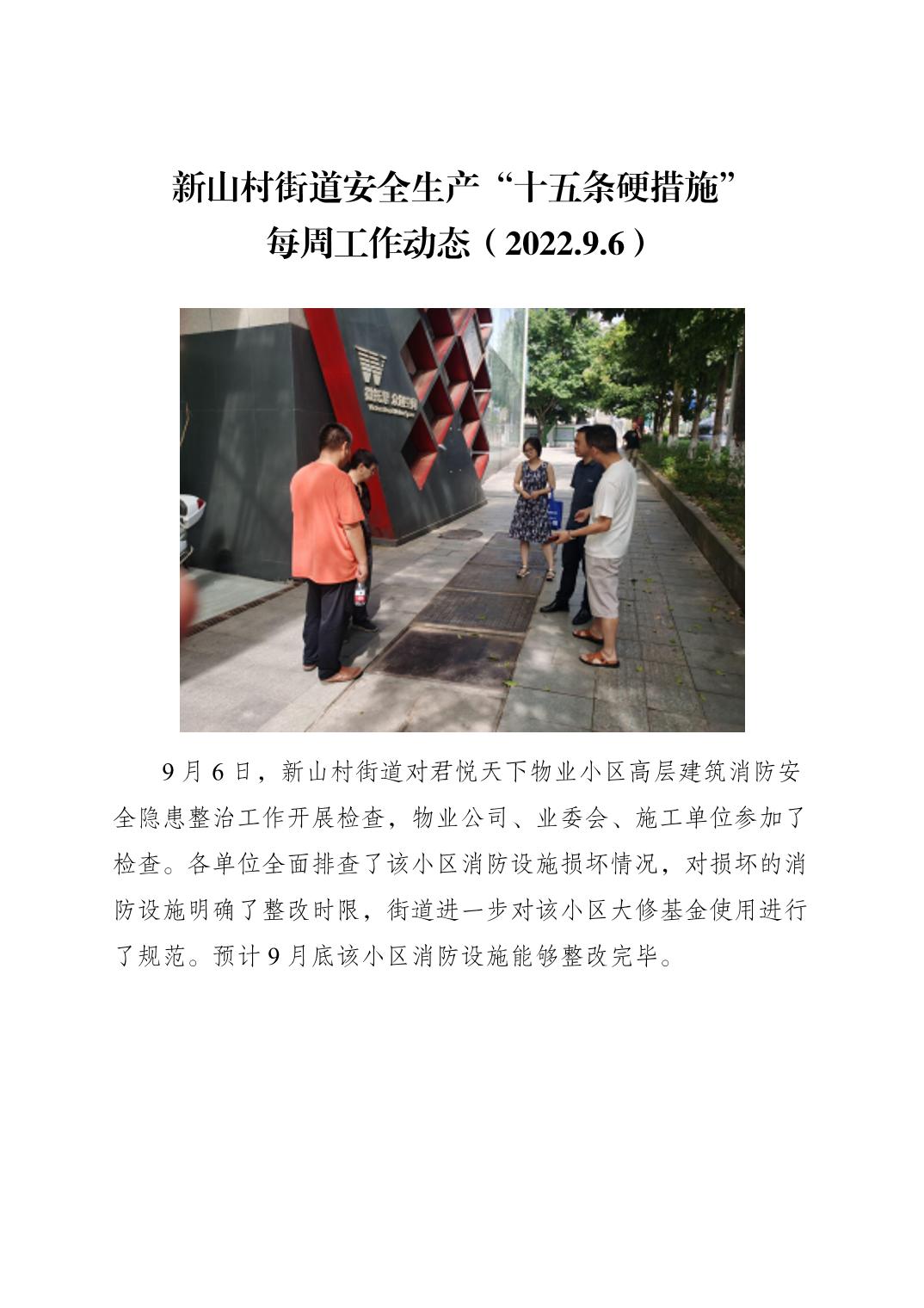 新山村街道安全生产“十五条硬措施”每周工作动态(2022.9.6)