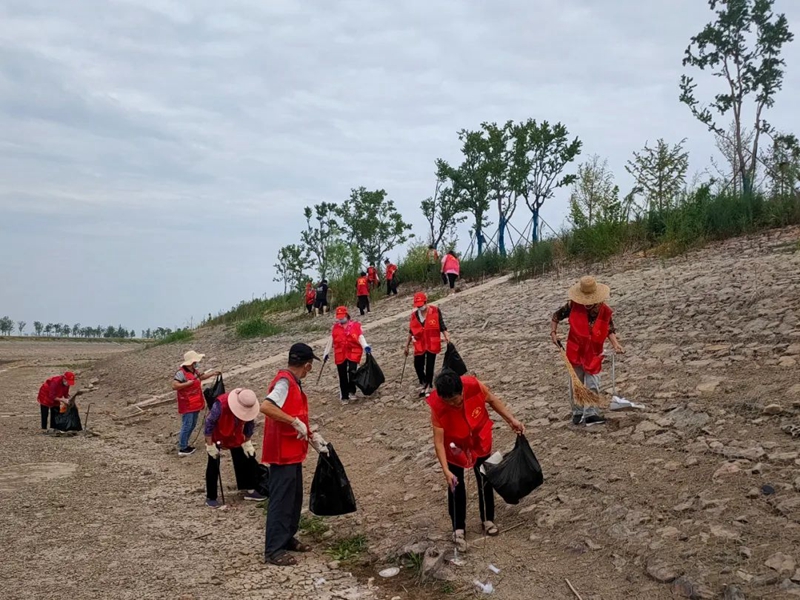 西山街道寒溪社区、落驾坪社区、西山社区、雷山社区组织辖区志愿者“净滩行动”同步进行中