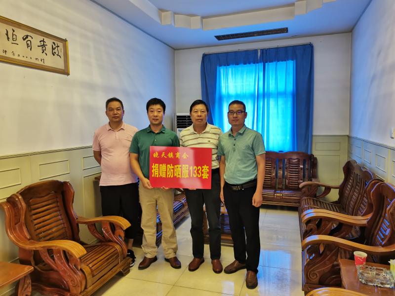 8月16日,晓天镇商会会长王启如一行来到晓天镇政府,捐赠了133套防晒服。