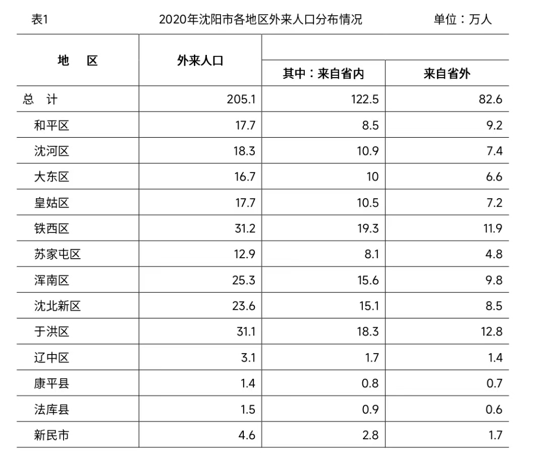 沈阳市外来人口达到205.1万人
