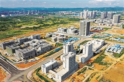 8月18日,位于北部生态新区的广西科技大学洛可可设计学院项目,三个区域的建筑主体全部封顶,施工整体进度65%,预计明年8月可交付使用。